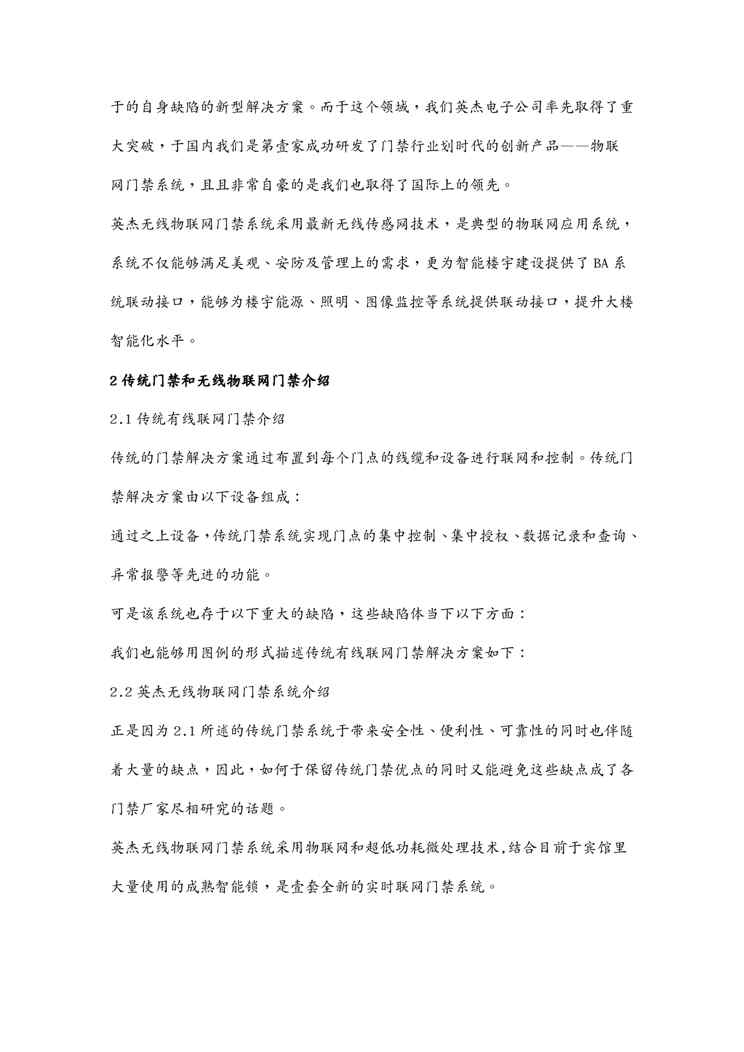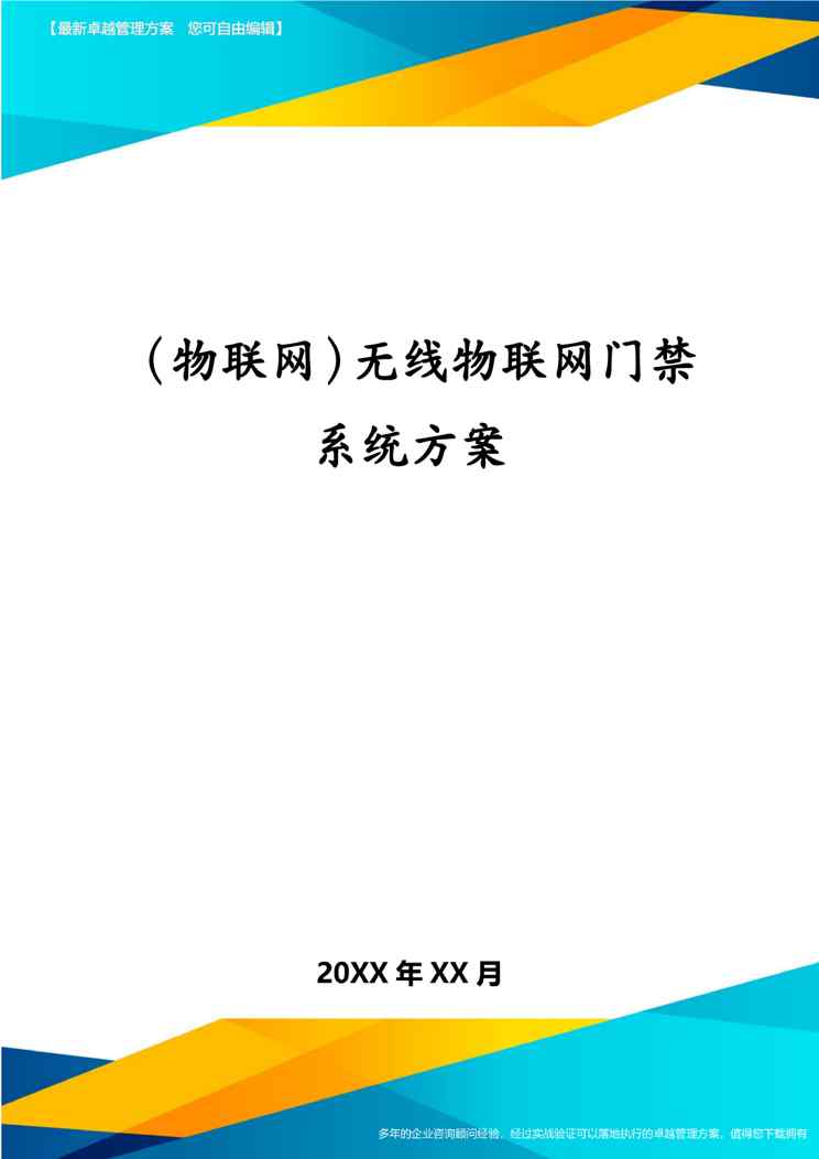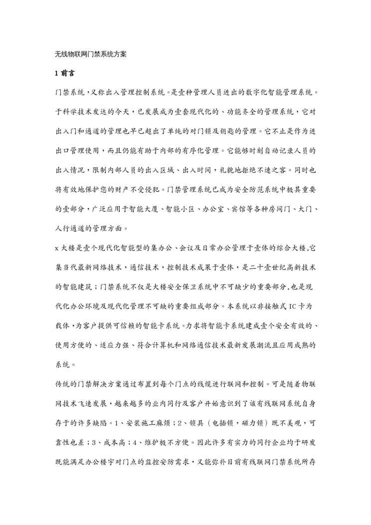 本站正式发布了《(物联网)无线物联网门禁系统方案》文档,文档详细内容可下载阅读。 声明:本站所有文章,如无特殊说明或标注,均为本站原创发布。任何个人或组织,在未征得本站同意时,禁止复制、盗用、采集、发布本站内容到任何网站、书籍等各类媒体平台。如若本站内容侵犯了原著者的合法权益,可联系我们进行处理。