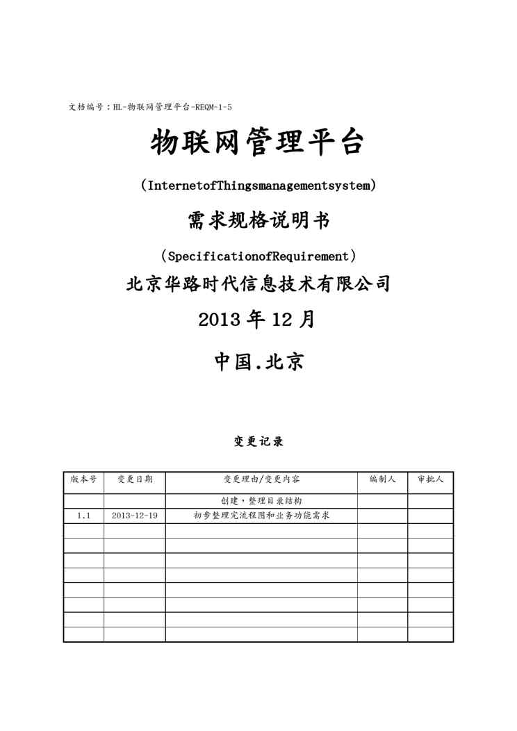 本站资深用户发布了最新的《(物联网)物联网管理平台需求规格说明书V》文档,以下内容为预览,详细内容可下载阅读。 声明:本站所有文章,如无特殊说明或标注,均为本站原创发布。任何个人或组织,在未征得本站同意时,禁止复制、盗用、采集、发布本站内容到任何网站、书籍等各类媒体平台。如若本站内容侵犯了原著者的合法权益,可联系我们进行处理。