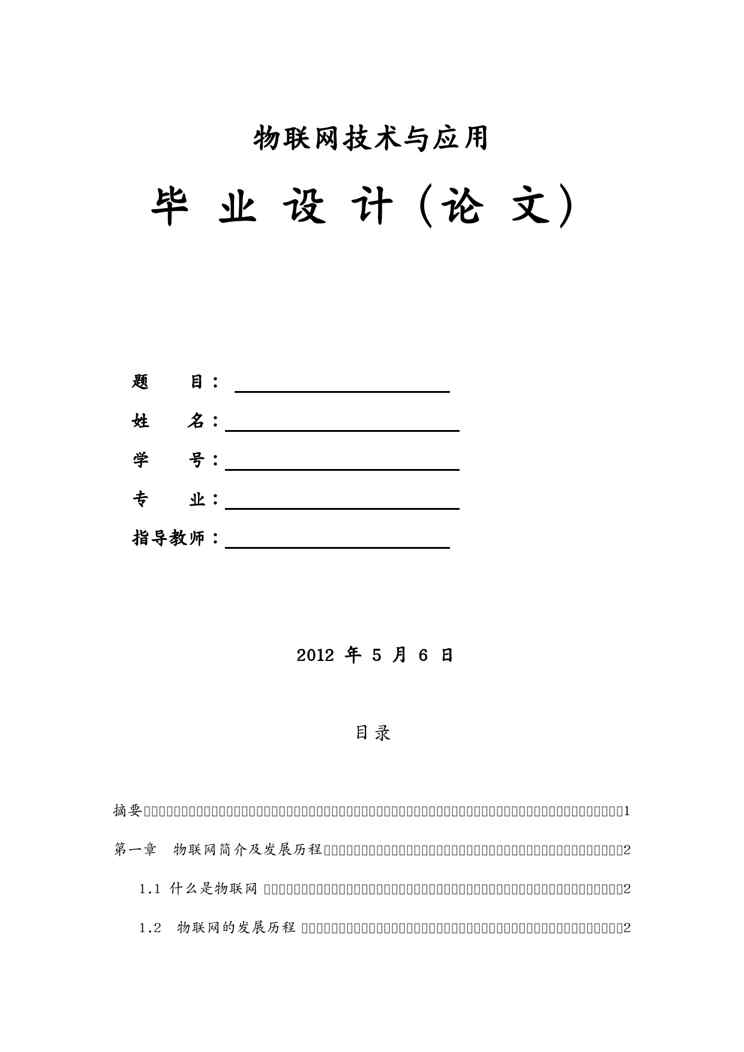 本站资深用户发布了最新的《(物联网)物联网技术与应用毕业设计(论文)》文档,以下内容为预览,详细内容可下载阅读。 声明:本站所有文章,如无特殊说明或标注,均为本站原创发布。任何个人或组织,在未征得本站同意时,禁止复制、盗用、采集、发布本站内容到任何网站、书籍等各类媒体平台。如若本站内容侵犯了原著者的合法权益,可联系我们进行处理。