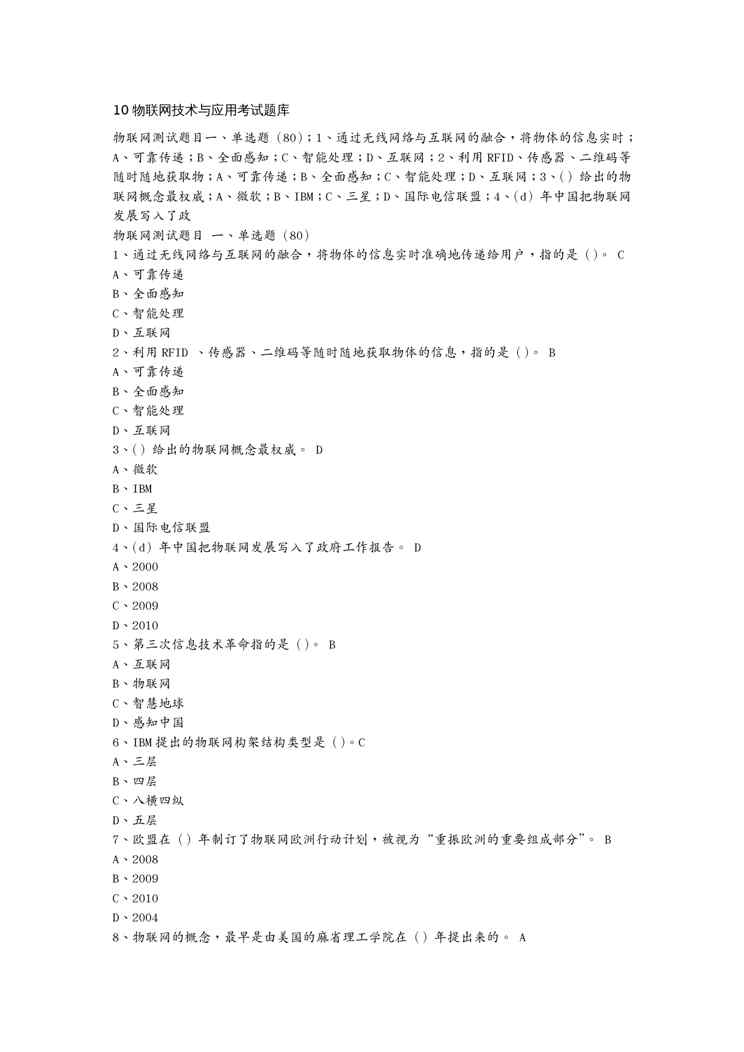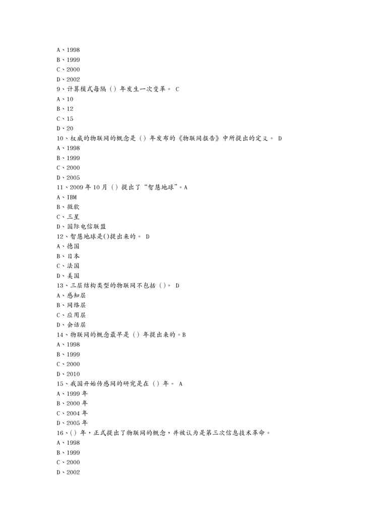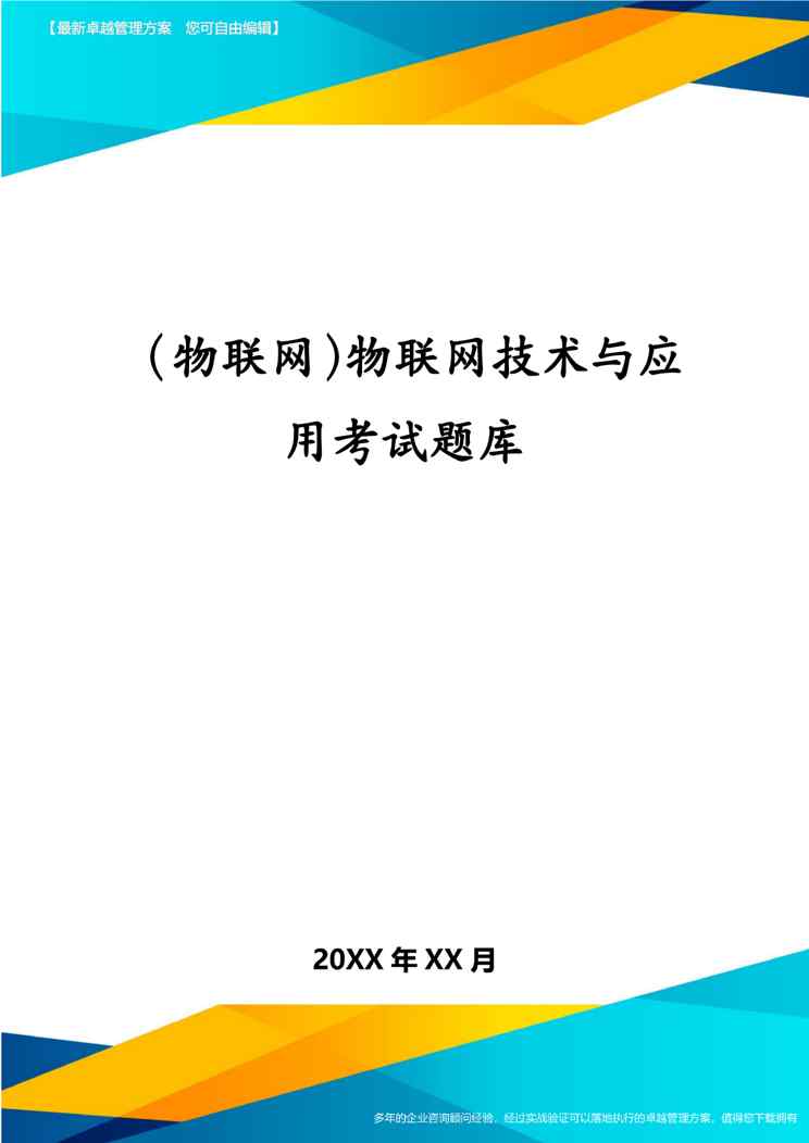 不久前,最新文档《(物联网)物联网技术与应用考试题库》全文正式在本站发布,感兴趣的用户可以下载阅读。 声明:本站所有文章,如无特殊说明或标注,均为本站原创发布。任何个人或组织,在未征得本站同意时,禁止复制、盗用、采集、发布本站内容到任何网站、书籍等各类媒体平台。如若本站内容侵犯了原著者的合法权益,可联系我们进行处理。
