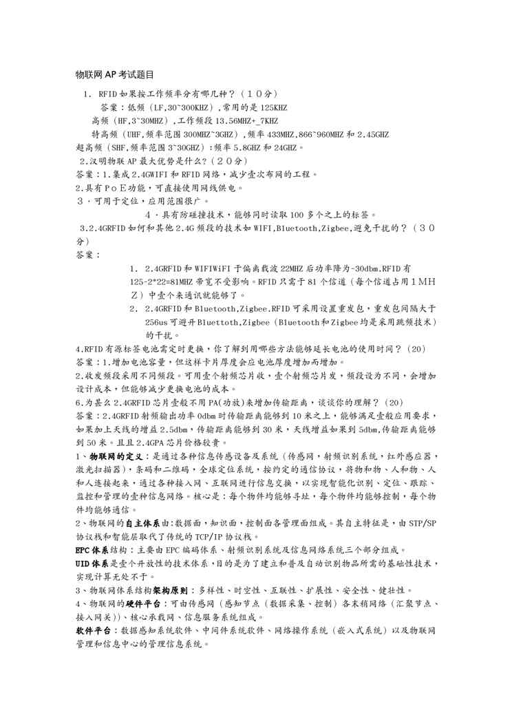 本站正式发布了《(物联网)物联网考试_知识点_全解》文档,文档详细内容可下载阅读。 声明:本站所有文章,如无特殊说明或标注,均为本站原创发布。任何个人或组织,在未征得本站同意时,禁止复制、盗用、采集、发布本站内容到任何网站、书籍等各类媒体平台。如若本站内容侵犯了原著者的合法权益,可联系我们进行处理。