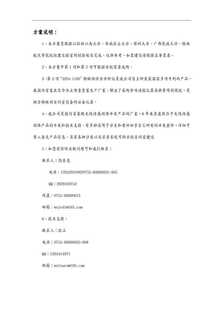 本站资深用户发布了最新的《(物联网)物联网实验室建设方案》文档,以下内容为预览,详细内容可下载阅读。 声明:本站所有文章,如无特殊说明或标注,均为本站原创发布。任何个人或组织,在未征得本站同意时,禁止复制、盗用、采集、发布本站内容到任何网站、书籍等各类媒体平台。如若本站内容侵犯了原著者的合法权益,可联系我们进行处理。