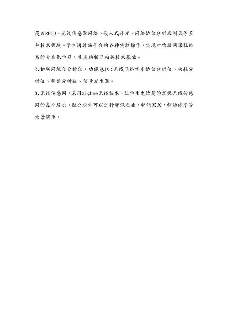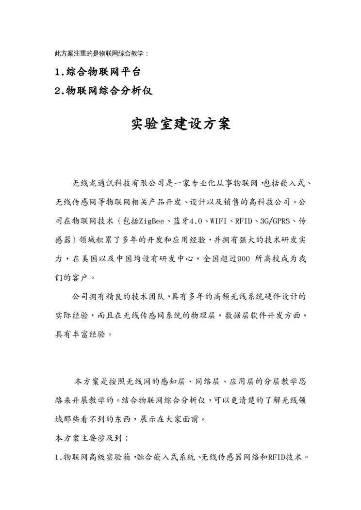 本站资深用户发布了最新的《(物联网)物联网实验室建设方案方案一(综合)》文档,以下内容为预览,详细内容可下载阅读。 声明:本站所有文章,如无特殊说明或标注,均为本站原创发布。任何个人或组织,在未征得本站同意时,禁止复制、盗用、采集、发布本站内容到任何网站、书籍等各类媒体平台。如若本站内容侵犯了原著者的合法权益,可联系我们进行处理。