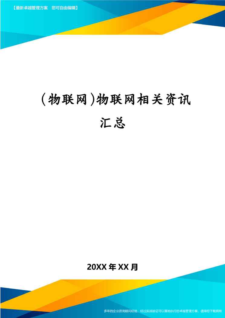 本站正式发布了《(物联网)物联网相关资讯汇总》文档,文档详细内容可下载阅读。 声明:本站所有文章,如无特殊说明或标注,均为本站原创发布。任何个人或组织,在未征得本站同意时,禁止复制、盗用、采集、发布本站内容到任何网站、书籍等各类媒体平台。如若本站内容侵犯了原著者的合法权益,可联系我们进行处理。