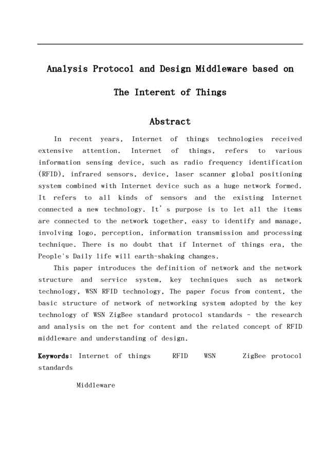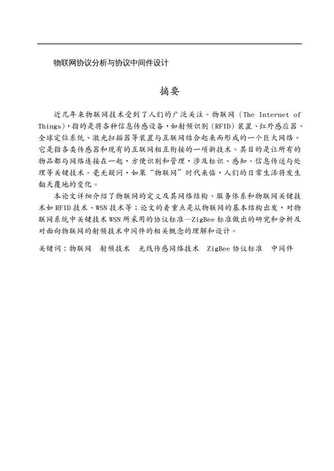 不久前,最新文档《(物联网)物联网协议分析与协议中间件设计》全文正式在本站发布,感兴趣的用户可以下载阅读。 声明:本站所有文章,如无特殊说明或标注,均为本站原创发布。任何个人或组织,在未征得本站同意时,禁止复制、盗用、采集、发布本站内容到任何网站、书籍等各类媒体平台。如若本站内容侵犯了原著者的合法权益,可联系我们进行处理。