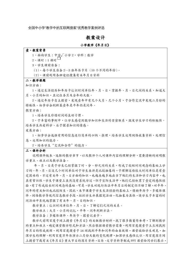 本站资深用户发布了最新的《(物联网)学教学中的互联网搜索优秀教学案例评选年月日教学设计_》文档,以下内容为预览,详细内容可下载阅读。 声明:本站所有文章,如无特殊说明或标注,均为本站原创发布。任何个人或组织,在未征得本站同意时,禁止复制、盗用、采集、发布本站内容到任何网站、书籍等各类媒体平台。如若本站内容侵犯了原著者的合法权益,可联系我们进行处理。