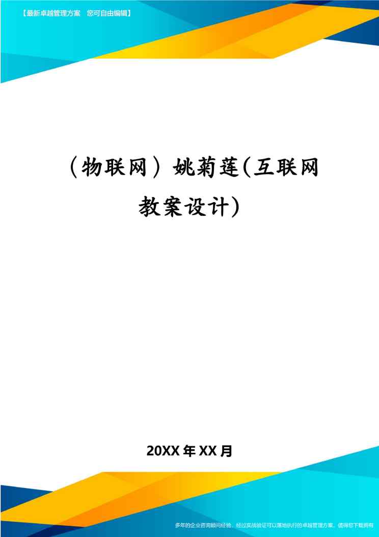 本站正式发布了《(物联网)姚菊莲(互联网教案设计)》文档,文档详细内容可下载阅读。 声明:本站所有文章,如无特殊说明或标注,均为本站原创发布。任何个人或组织,在未征得本站同意时,禁止复制、盗用、采集、发布本站内容到任何网站、书籍等各类媒体平台。如若本站内容侵犯了原著者的合法权益,可联系我们进行处理。