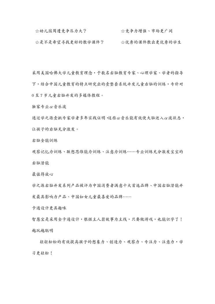 本站正式发布了《(物联网)右脑开发升级版智慧宝使用方法》文档,文档详细内容可下载阅读。 声明:本站所有文章,如无特殊说明或标注,均为本站原创发布。任何个人或组织,在未征得本站同意时,禁止复制、盗用、采集、发布本站内容到任何网站、书籍等各类媒体平台。如若本站内容侵犯了原著者的合法权益,可联系我们进行处理。