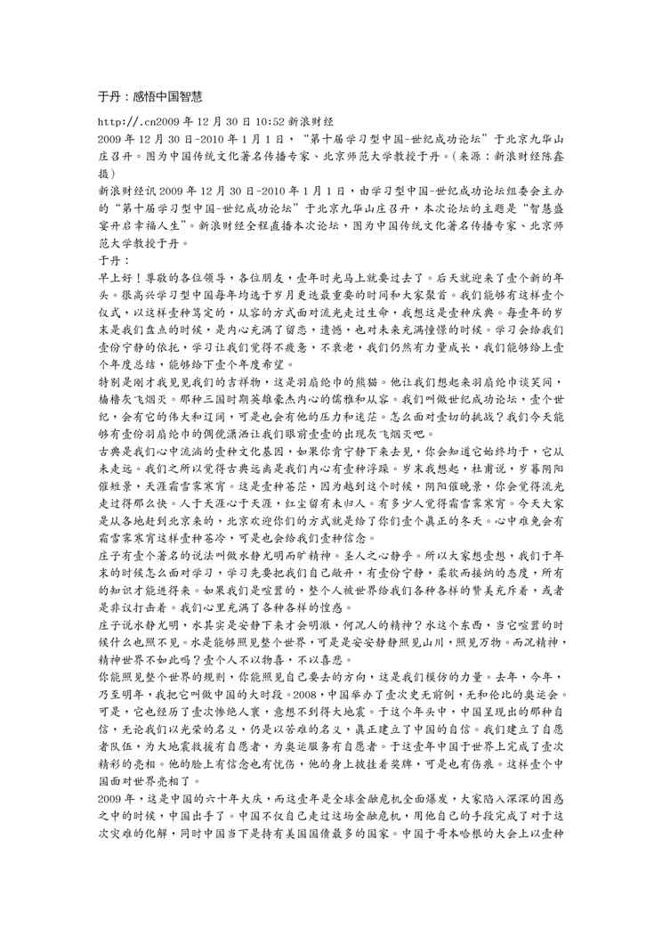 本站资深用户发布了最新的《(物联网)于丹感悟中国智慧》文档,以下内容为预览,详细内容可下载阅读。 声明:本站所有文章,如无特殊说明或标注,均为本站原创发布。任何个人或组织,在未征得本站同意时,禁止复制、盗用、采集、发布本站内容到任何网站、书籍等各类媒体平台。如若本站内容侵犯了原著者的合法权益,可联系我们进行处理。