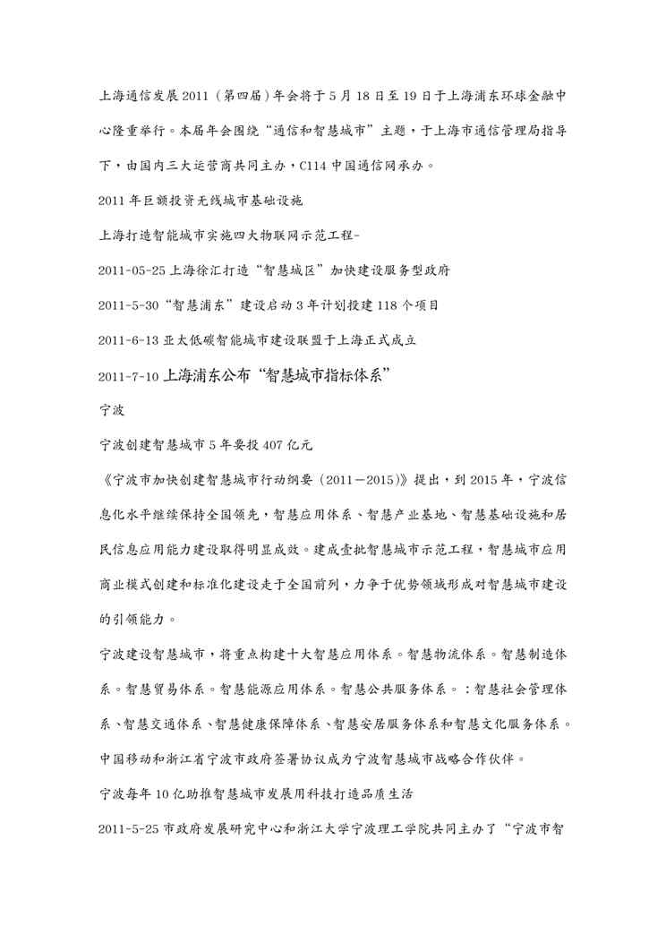 本站正式发布了《(物联网)智慧城市进展》文档,文档详细内容可下载阅读。 声明:本站所有文章,如无特殊说明或标注,均为本站原创发布。任何个人或组织,在未征得本站同意时,禁止复制、盗用、采集、发布本站内容到任何网站、书籍等各类媒体平台。如若本站内容侵犯了原著者的合法权益,可联系我们进行处理。