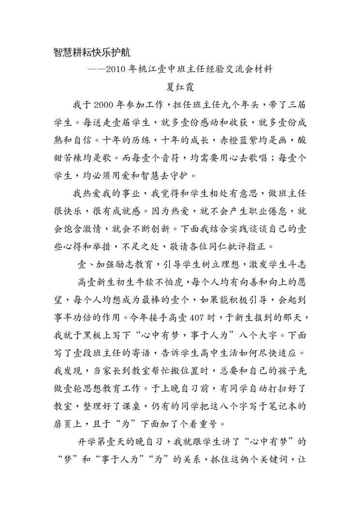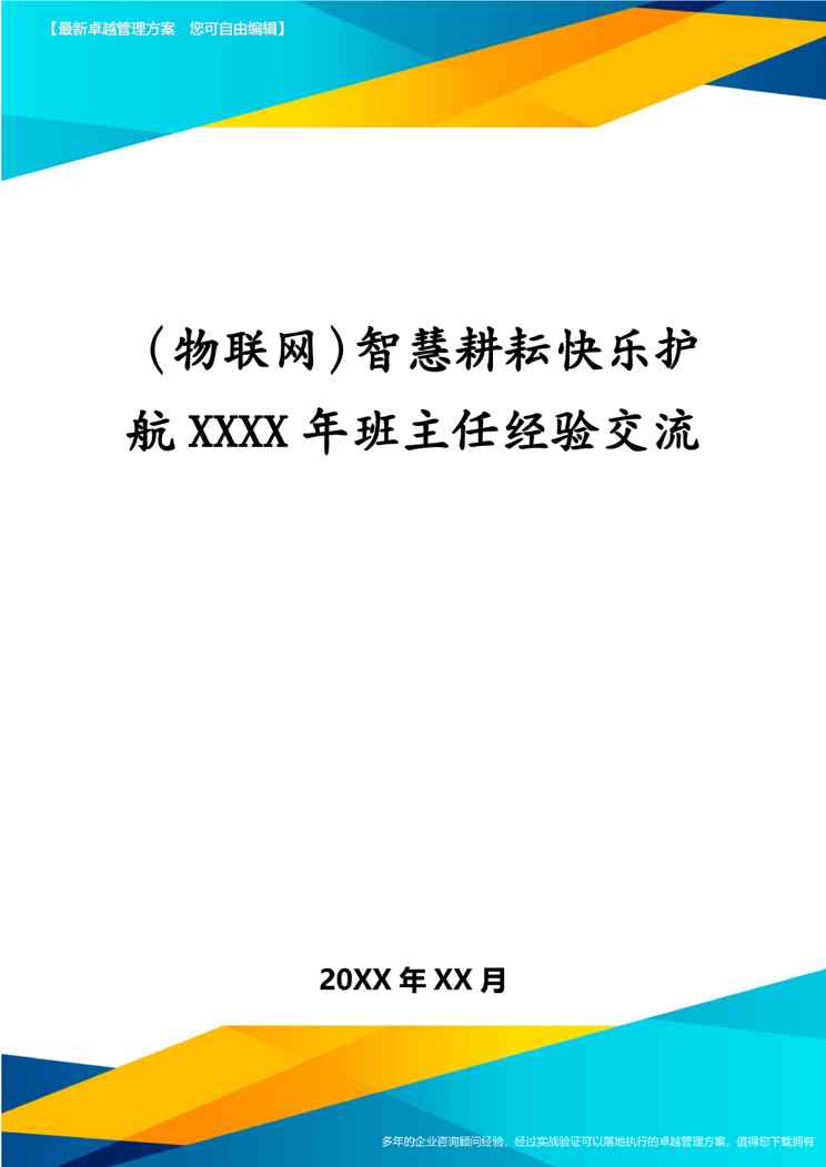 本站正式发布了《(物联网)智慧耕耘快乐护航XXXX年班主任经验交流》文档,文档详细内容可下载阅读。 声明:本站所有文章,如无特殊说明或标注,均为本站原创发布。任何个人或组织,在未征得本站同意时,禁止复制、盗用、采集、发布本站内容到任何网站、书籍等各类媒体平台。如若本站内容侵犯了原著者的合法权益,可联系我们进行处理。