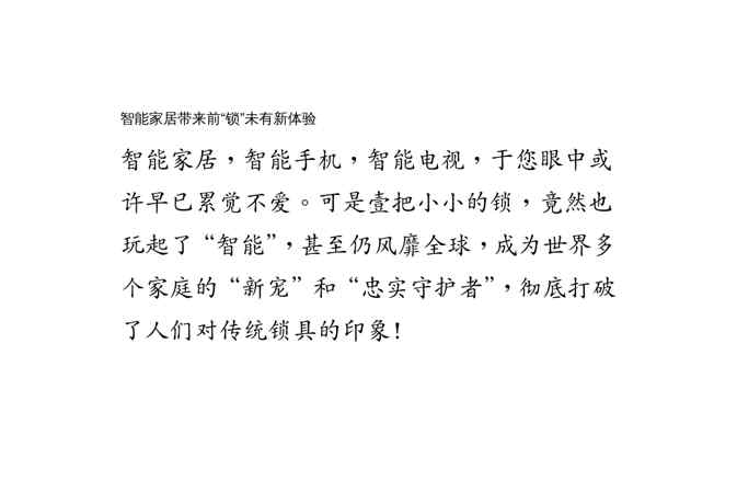 不久前,最新文档《(物联网)智能家居带来前锁未有新体验》全文正式在本站发布,感兴趣的用户可以下载阅读。 声明:本站所有文章,如无特殊说明或标注,均为本站原创发布。任何个人或组织,在未征得本站同意时,禁止复制、盗用、采集、发布本站内容到任何网站、书籍等各类媒体平台。如若本站内容侵犯了原著者的合法权益,可联系我们进行处理。
