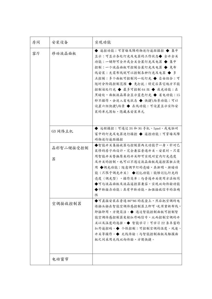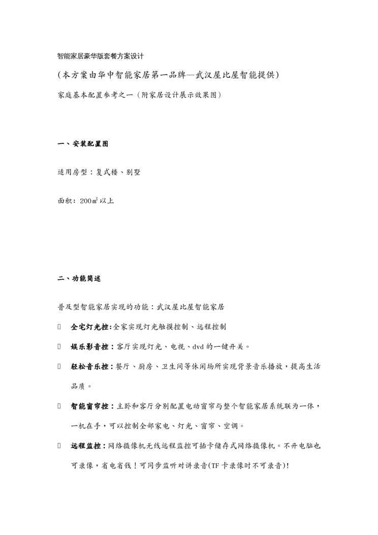 本站资深用户发布了最新的《(物联网)智能家居豪华版套餐方案设计》文档,以下内容为预览,详细内容可下载阅读。 声明:本站所有文章,如无特殊说明或标注,均为本站原创发布。任何个人或组织,在未征得本站同意时,禁止复制、盗用、采集、发布本站内容到任何网站、书籍等各类媒体平台。如若本站内容侵犯了原著者的合法权益,可联系我们进行处理。