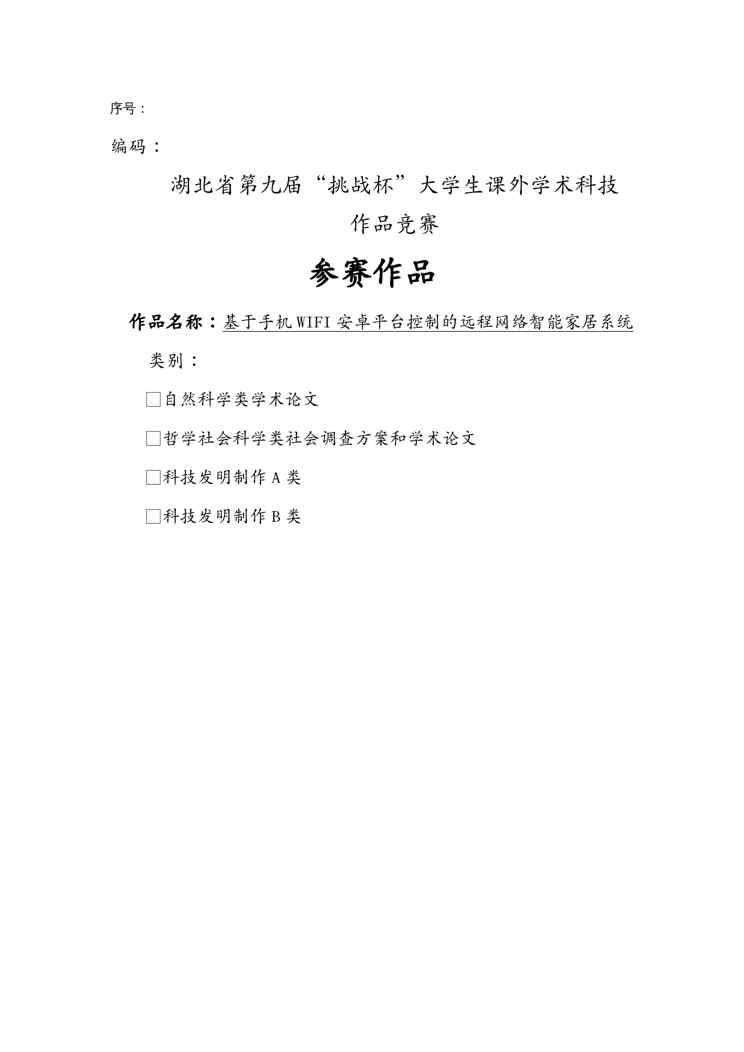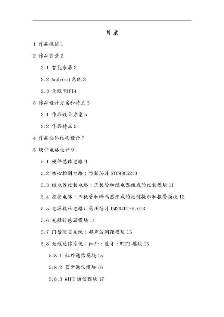 本站资深用户发布了最新的《(物联网)智能家居作品》文档,以下内容为预览,详细内容可下载阅读。 声明:本站所有文章,如无特殊说明或标注,均为本站原创发布。任何个人或组织,在未征得本站同意时,禁止复制、盗用、采集、发布本站内容到任何网站、书籍等各类媒体平台。如若本站内容侵犯了原著者的合法权益,可联系我们进行处理。