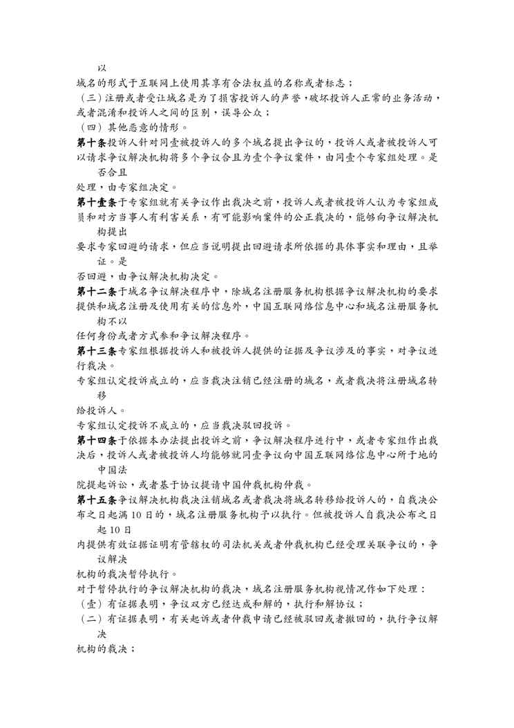 本站正式发布了《(物联网)中国互联网络信息中心域名争议解决办法》文档,文档详细内容可下载阅读。 声明:本站所有文章,如无特殊说明或标注,均为本站原创发布。任何个人或组织,在未征得本站同意时,禁止复制、盗用、采集、发布本站内容到任何网站、书籍等各类媒体平台。如若本站内容侵犯了原著者的合法权益,可联系我们进行处理。