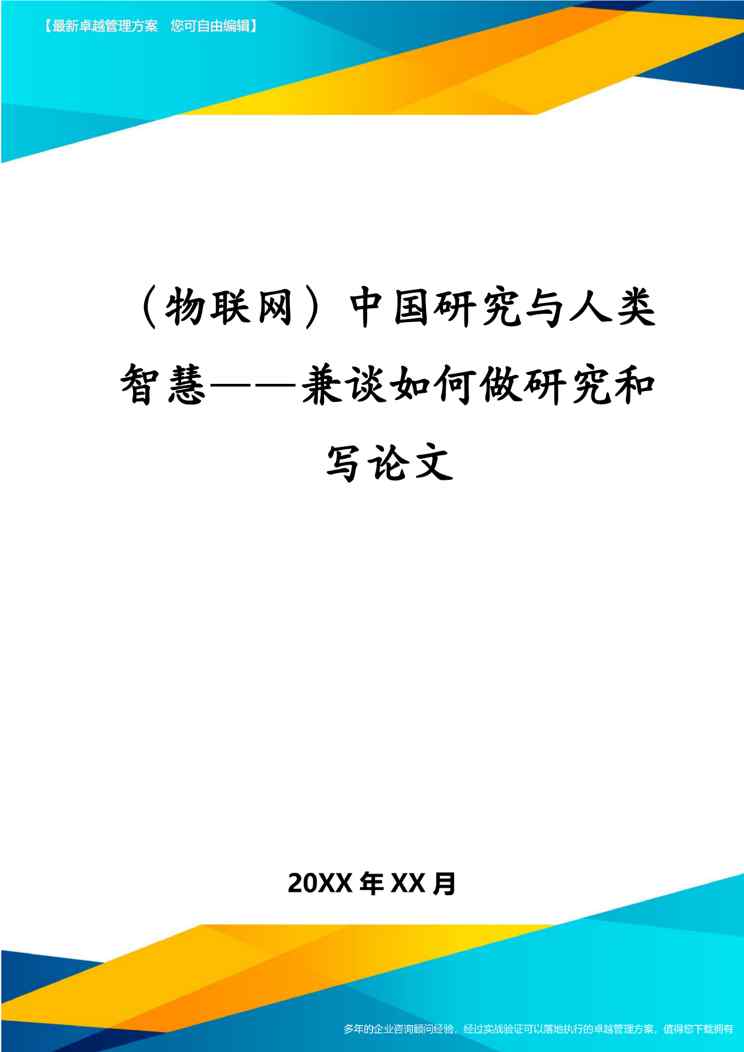 不久前,最新文档《(物联网)中国研究与人类智慧——兼谈如何做研究和写论文》全文正式在本站发布,感兴趣的用户可以下载阅读。 声明:本站所有文章,如无特殊说明或标注,均为本站原创发布。任何个人或组织,在未征得本站同意时,禁止复制、盗用、采集、发布本站内容到任何网站、书籍等各类媒体平台。如若本站内容侵犯了原著者的合法权益,可联系我们进行处理。