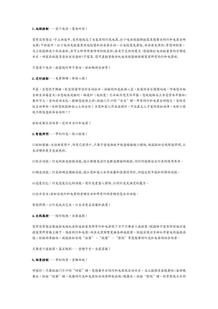 不久前,最新文档《(物联网)中凯城市之光智能家居系统方案》全文正式在本站发布,感兴趣的用户可以下载阅读。 声明:本站所有文章,如无特殊说明或标注,均为本站原创发布。任何个人或组织,在未征得本站同意时,禁止复制、盗用、采集、发布本站内容到任何网站、书籍等各类媒体平台。如若本站内容侵犯了原著者的合法权益,可联系我们进行处理。