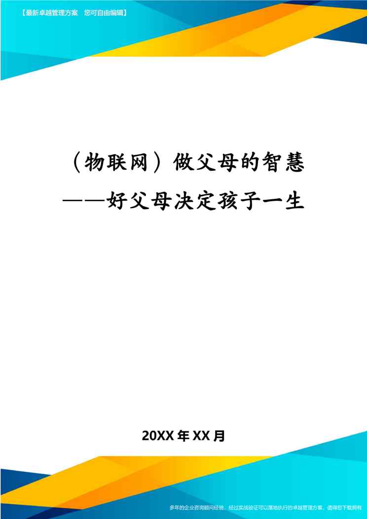 本站正式发布了《(物联网)做父母的智慧——好父母决定孩子一生》文档,文档详细内容可下载阅读。 声明:本站所有文章,如无特殊说明或标注,均为本站原创发布。任何个人或组织,在未征得本站同意时,禁止复制、盗用、采集、发布本站内容到任何网站、书籍等各类媒体平台。如若本站内容侵犯了原著者的合法权益,可联系我们进行处理。