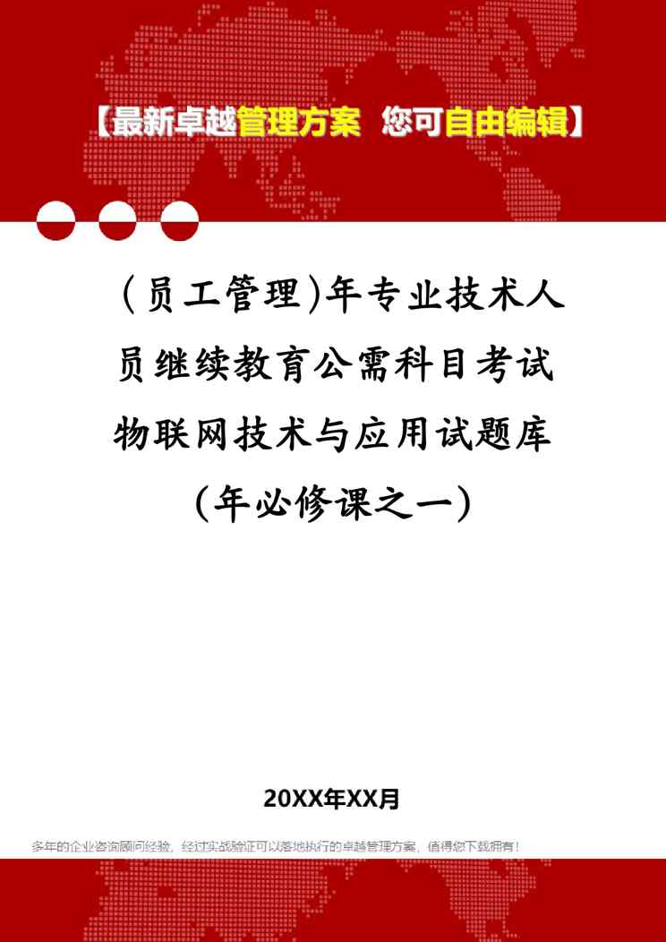 本站正式发布了《(员工管理)年专业技术人员继续教育公需科目考试物联网技术与应用试题库(年必修课之一)》文档,文档详细内容可下载阅读。 声明:本站所有文章,如无特殊说明或标注,均为本站原创发布。任何个人或组织,在未征得本站同意时,禁止复制、盗用、采集、发布本站内容到任何网站、书籍等各类媒体平台。如若本站内容侵犯了原著者的合法权益,可联系我们进行处理。