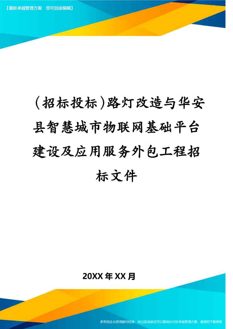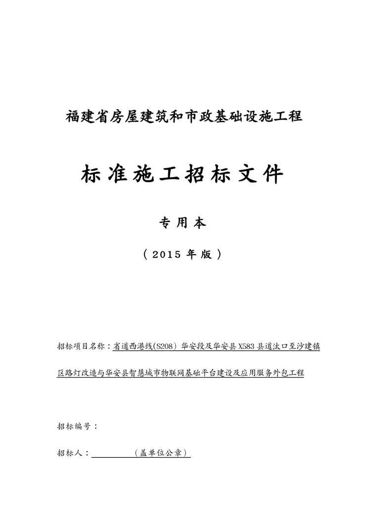 本站资深用户发布了最新的《(招标投标)路灯改造与华安县智慧城市物联网基础平台建设及应用服务外包工程招标文件》文档,以下内容为预览,详细内容可下载阅读。 声明:本站所有文章,如无特殊说明或标注,均为本站原创发布。任何个人或组织,在未征得本站同意时,禁止复制、盗用、采集、发布本站内容到任何网站、书籍等各类媒体平台。如若本站内容侵犯了原著者的合法权益,可联系我们进行处理。