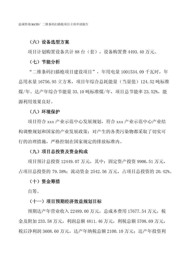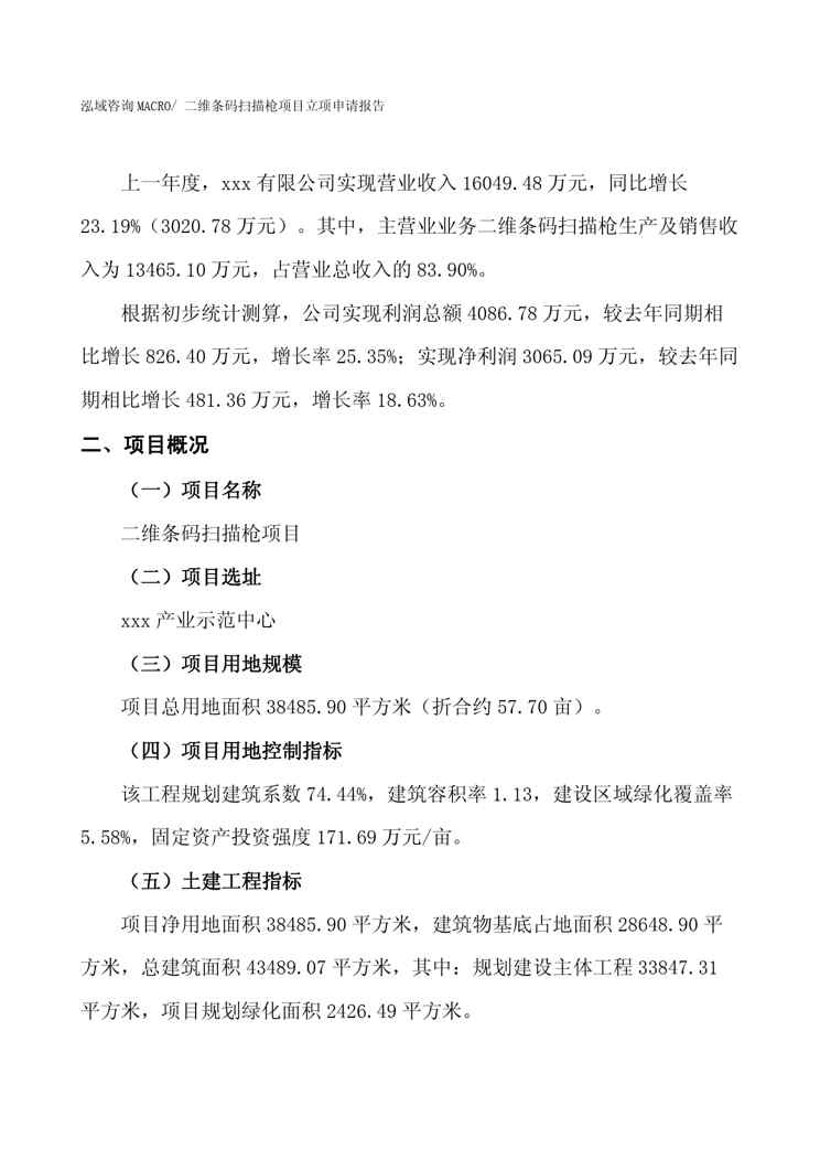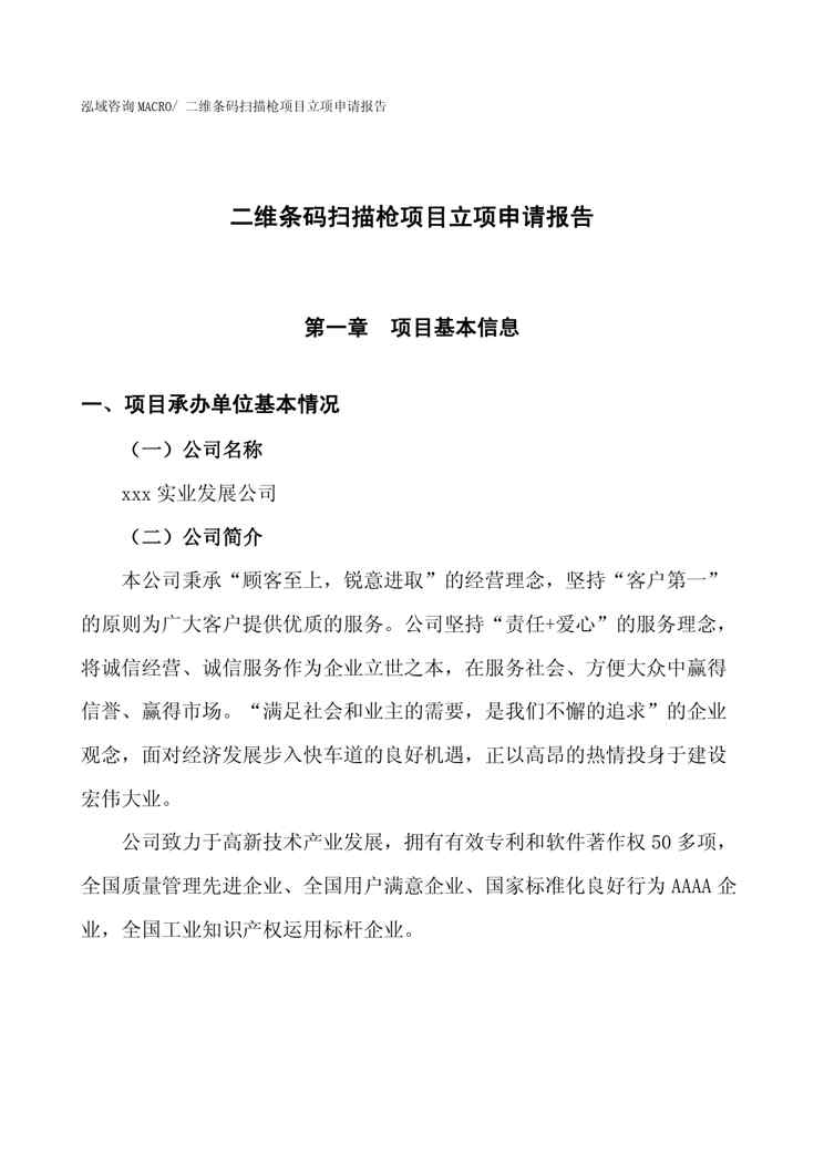 不久前,最新文档《(招商引资)二维条码扫描枪项目立项申请报告》全文正式在本站发布,感兴趣的用户可以下载阅读。 声明:本站所有文章,如无特殊说明或标注,均为本站原创发布。任何个人或组织,在未征得本站同意时,禁止复制、盗用、采集、发布本站内容到任何网站、书籍等各类媒体平台。如若本站内容侵犯了原著者的合法权益,可联系我们进行处理。