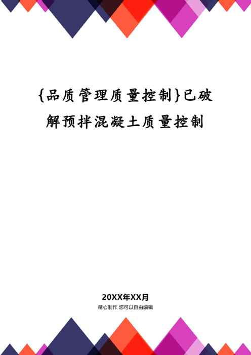 本站资深用户发布了最新的《{品质管理质量控制}已破解预拌混凝土质量控制》文档,以下内容为预览,详细内容可下载阅读。 声明:本站所有文章,如无特殊说明或标注,均为本站原创发布。任何个人或组织,在未征得本站同意时,禁止复制、盗用、采集、发布本站内容到任何网站、书籍等各类媒体平台。如若本站内容侵犯了原著者的合法权益,可联系我们进行处理。