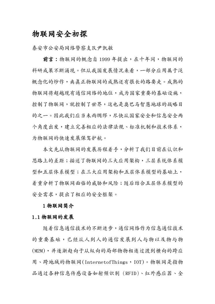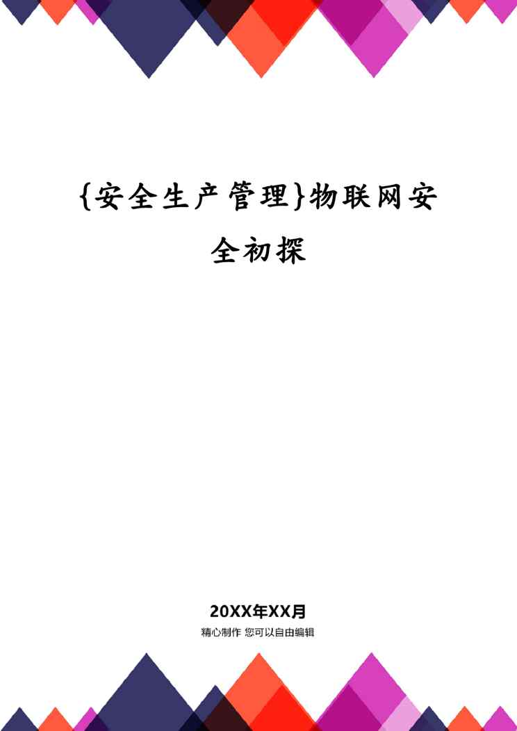 本站正式发布了《{安全生产管理}物联网安全初探》文档,文档详细内容可下载阅读。 声明:本站所有文章,如无特殊说明或标注,均为本站原创发布。任何个人或组织,在未征得本站同意时,禁止复制、盗用、采集、发布本站内容到任何网站、书籍等各类媒体平台。如若本站内容侵犯了原著者的合法权益,可联系我们进行处理。