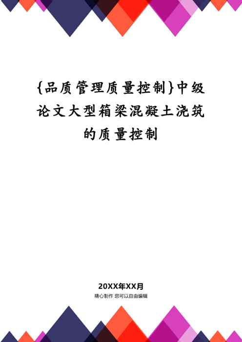 本站正式发布了《{品质管理质量控制}中级论文大型箱梁混凝土浇筑的质量控制》文档,文档详细内容可下载阅读。 声明:本站所有文章,如无特殊说明或标注,均为本站原创发布。任何个人或组织,在未征得本站同意时,禁止复制、盗用、采集、发布本站内容到任何网站、书籍等各类媒体平台。如若本站内容侵犯了原著者的合法权益,可联系我们进行处理。