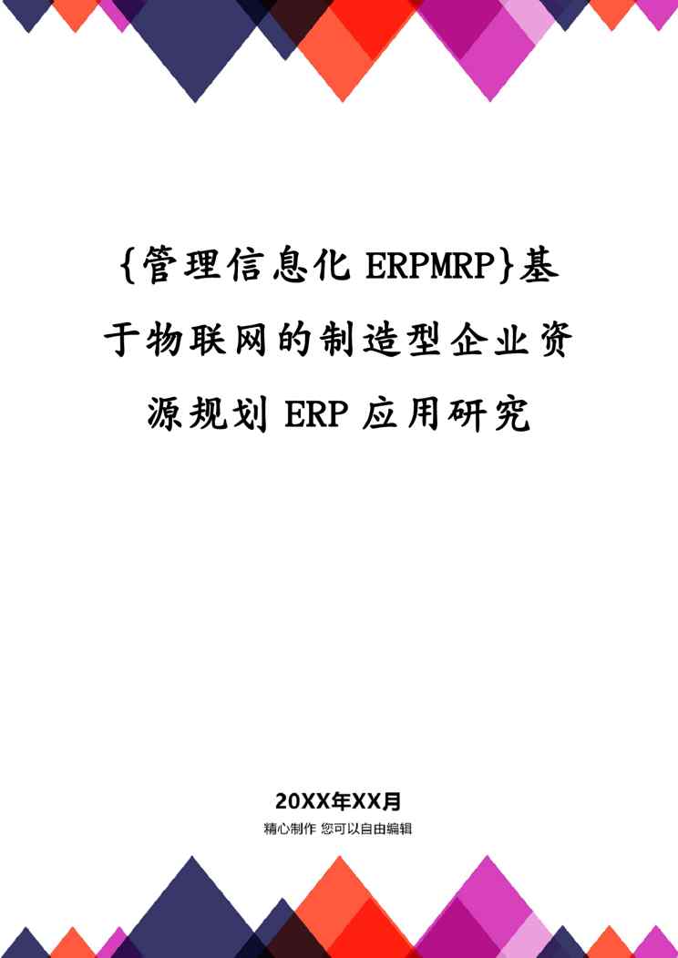 本站资深用户发布了最新的《{管理信息化ERPMRP}基于物联网的制造型企业资源规划ERP应用研究》文档,以下内容为预览,详细内容可下载阅读。 声明:本站所有文章,如无特殊说明或标注,均为本站原创发布。任何个人或组织,在未征得本站同意时,禁止复制、盗用、采集、发布本站内容到任何网站、书籍等各类媒体平台。如若本站内容侵犯了原著者的合法权益,可联系我们进行处理。