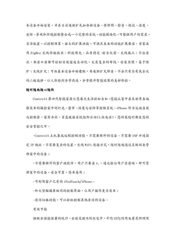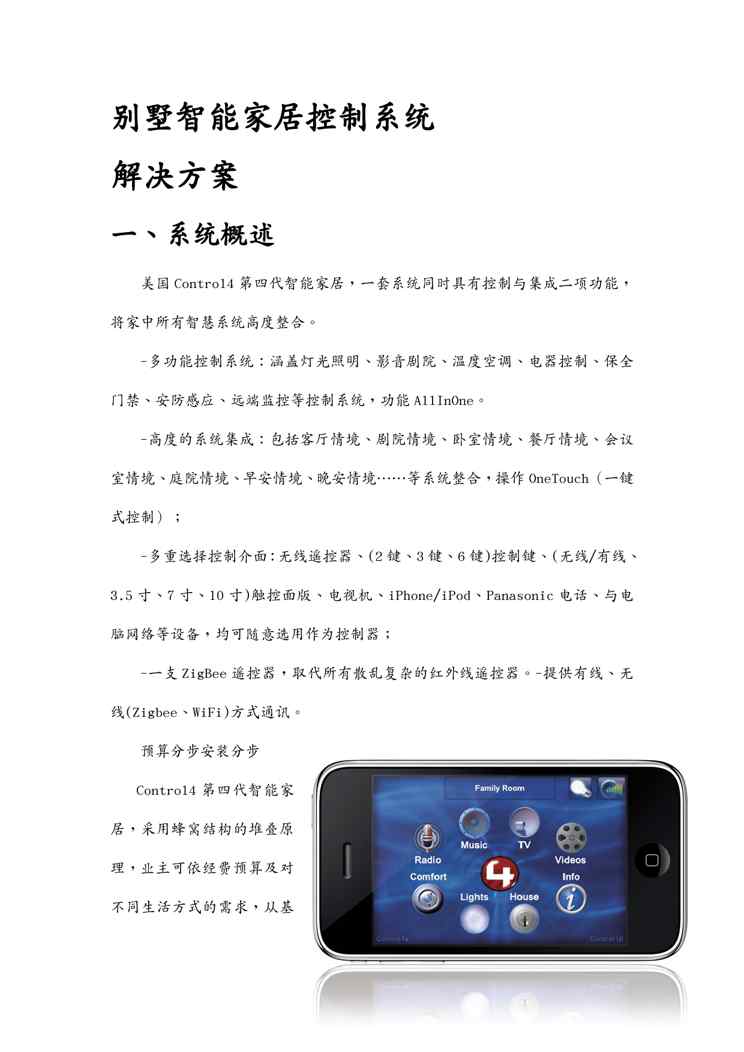 本站正式发布了《{管理信息化物联网}Control4别墅智能家居解决方案DOC34页)》文档,文档详细内容可下载阅读。 声明:本站所有文章,如无特殊说明或标注,均为本站原创发布。任何个人或组织,在未征得本站同意时,禁止复制、盗用、采集、发布本站内容到任何网站、书籍等各类媒体平台。如若本站内容侵犯了原著者的合法权益,可联系我们进行处理。