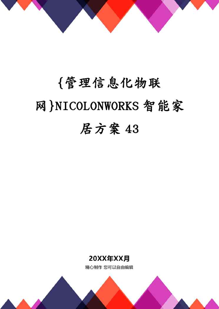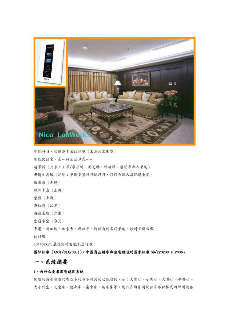 不久前,最新文档《{管理信息化物联网}NICOLONWORKS智能家居方案43》全文正式在本站发布,感兴趣的用户可以下载阅读。 声明:本站所有文章,如无特殊说明或标注,均为本站原创发布。任何个人或组织,在未征得本站同意时,禁止复制、盗用、采集、发布本站内容到任何网站、书籍等各类媒体平台。如若本站内容侵犯了原著者的合法权益,可联系我们进行处理。