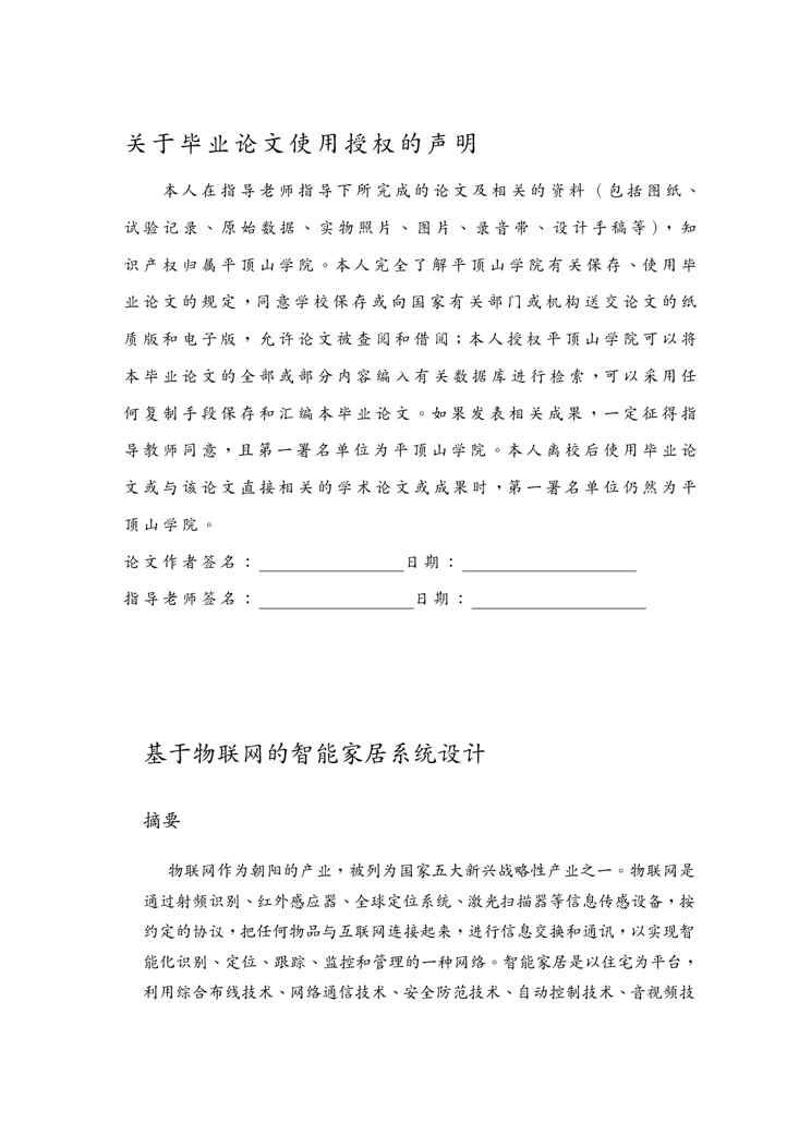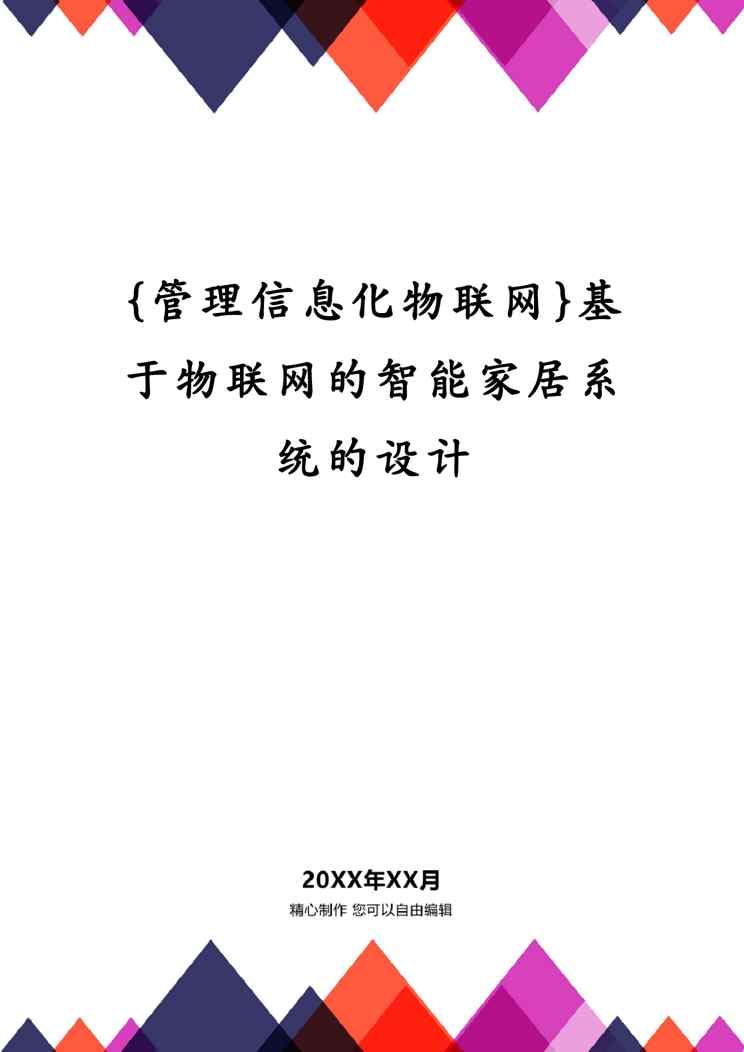 本站正式发布了《{管理信息化物联网}基于物联网的智能家居系统的设计》文档,文档详细内容可下载阅读。 声明:本站所有文章,如无特殊说明或标注,均为本站原创发布。任何个人或组织,在未征得本站同意时,禁止复制、盗用、采集、发布本站内容到任何网站、书籍等各类媒体平台。如若本站内容侵犯了原著者的合法权益,可联系我们进行处理。