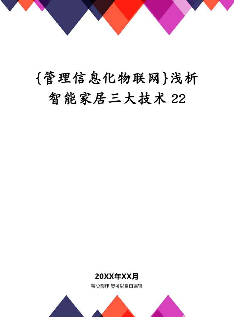 本站资深用户发布了最新的《{管理信息化物联网}浅析智能家居三大技术22》文档,以下内容为预览,详细内容可下载阅读。 声明:本站所有文章,如无特殊说明或标注,均为本站原创发布。任何个人或组织,在未征得本站同意时,禁止复制、盗用、采集、发布本站内容到任何网站、书籍等各类媒体平台。如若本站内容侵犯了原著者的合法权益,可联系我们进行处理。