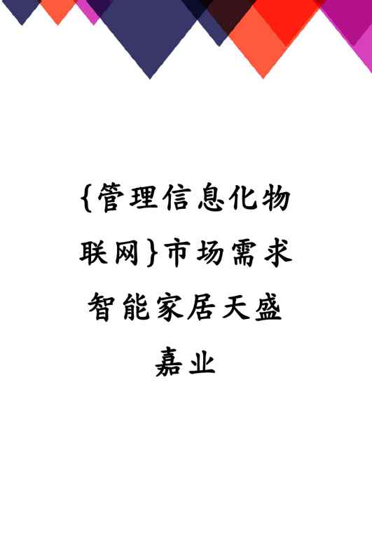 本站正式发布了《{管理信息化物联网}市场需求智能家居天盛嘉业》文档,文档详细内容可下载阅读。 声明:本站所有文章,如无特殊说明或标注,均为本站原创发布。任何个人或组织,在未征得本站同意时,禁止复制、盗用、采集、发布本站内容到任何网站、书籍等各类媒体平台。如若本站内容侵犯了原著者的合法权益,可联系我们进行处理。