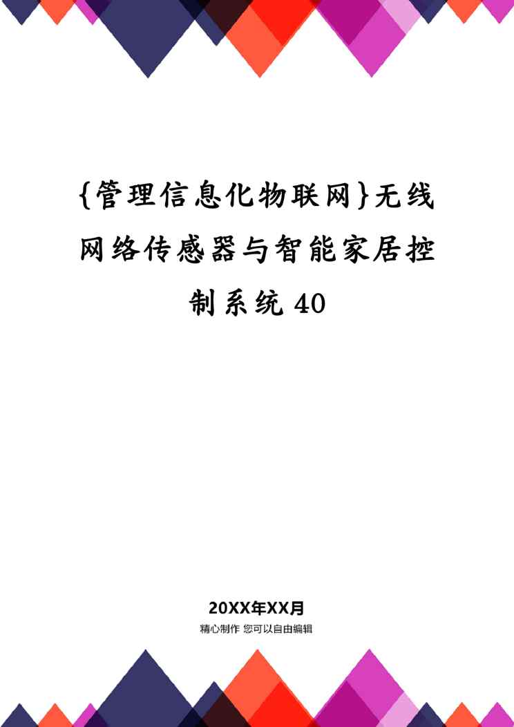 本站资深用户发布了最新的《{管理信息化物联网}无线网络传感器与智能家居控制系统40》文档,以下内容为预览,详细内容可下载阅读。 声明:本站所有文章,如无特殊说明或标注,均为本站原创发布。任何个人或组织,在未征得本站同意时,禁止复制、盗用、采集、发布本站内容到任何网站、书籍等各类媒体平台。如若本站内容侵犯了原著者的合法权益,可联系我们进行处理。