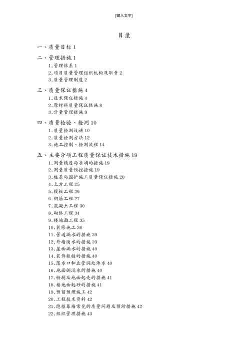 不久前,最新文档《{品质管理质量认证}工程施工质量保证体系施工组织设计技术标》全文正式在本站发布,感兴趣的用户可以下载阅读。 声明:本站所有文章,如无特殊说明或标注,均为本站原创发布。任何个人或组织,在未征得本站同意时,禁止复制、盗用、采集、发布本站内容到任何网站、书籍等各类媒体平台。如若本站内容侵犯了原著者的合法权益,可联系我们进行处理。
