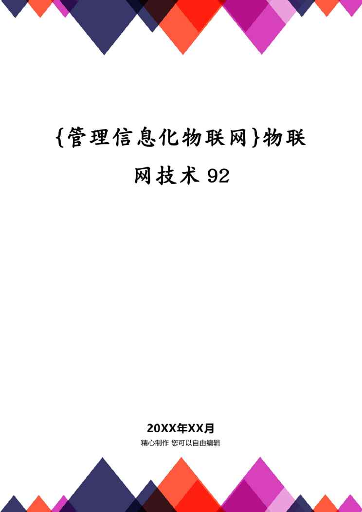 本站正式发布了《{管理信息化物联网}物联网技术92》文档,文档详细内容可下载阅读。 声明:本站所有文章,如无特殊说明或标注,均为本站原创发布。任何个人或组织,在未征得本站同意时,禁止复制、盗用、采集、发布本站内容到任何网站、书籍等各类媒体平台。如若本站内容侵犯了原著者的合法权益,可联系我们进行处理。