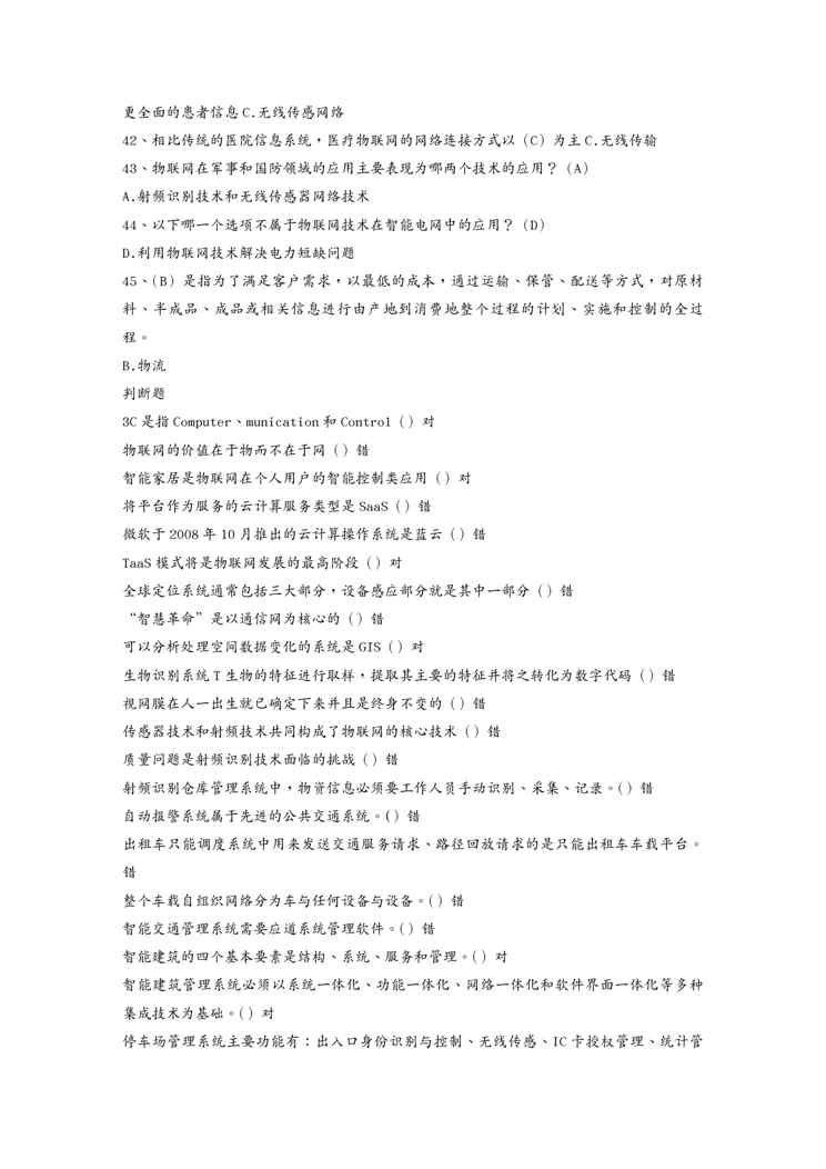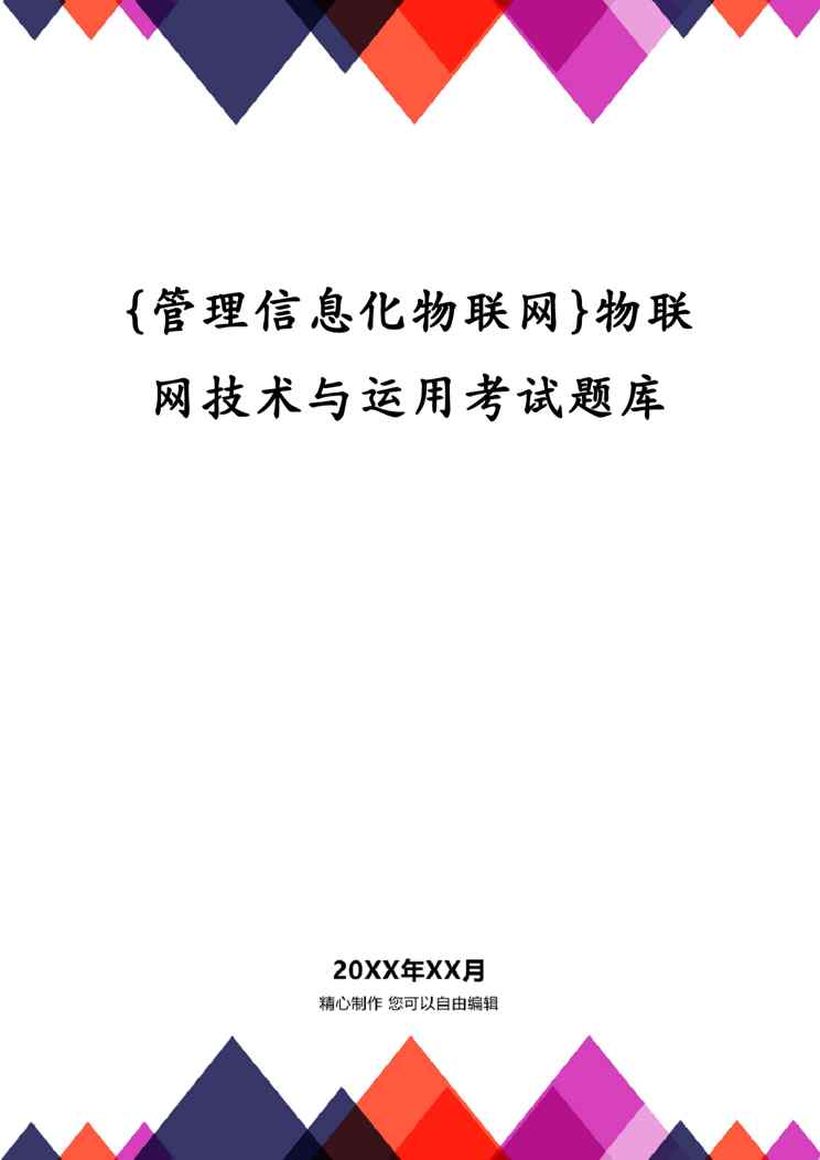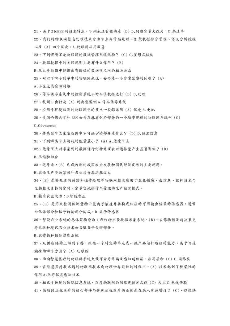 本站资深用户发布了最新的《{管理信息化物联网}物联网技术与运用考试题库》文档,以下内容为预览,详细内容可下载阅读。 声明:本站所有文章,如无特殊说明或标注,均为本站原创发布。任何个人或组织,在未征得本站同意时,禁止复制、盗用、采集、发布本站内容到任何网站、书籍等各类媒体平台。如若本站内容侵犯了原著者的合法权益,可联系我们进行处理。