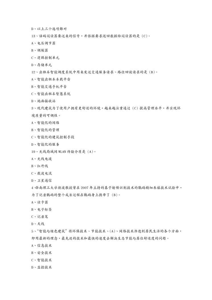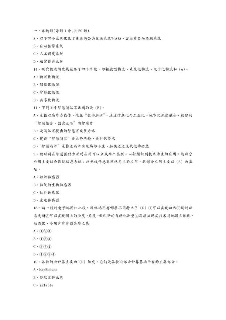 本站资深用户发布了最新的《{管理信息化物联网}物联网试题1101》文档,以下内容为预览,详细内容可下载阅读。 声明:本站所有文章,如无特殊说明或标注,均为本站原创发布。任何个人或组织,在未征得本站同意时,禁止复制、盗用、采集、发布本站内容到任何网站、书籍等各类媒体平台。如若本站内容侵犯了原著者的合法权益,可联系我们进行处理。