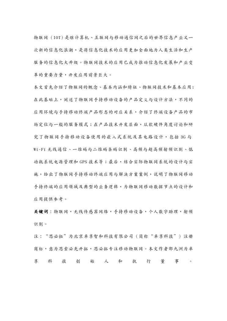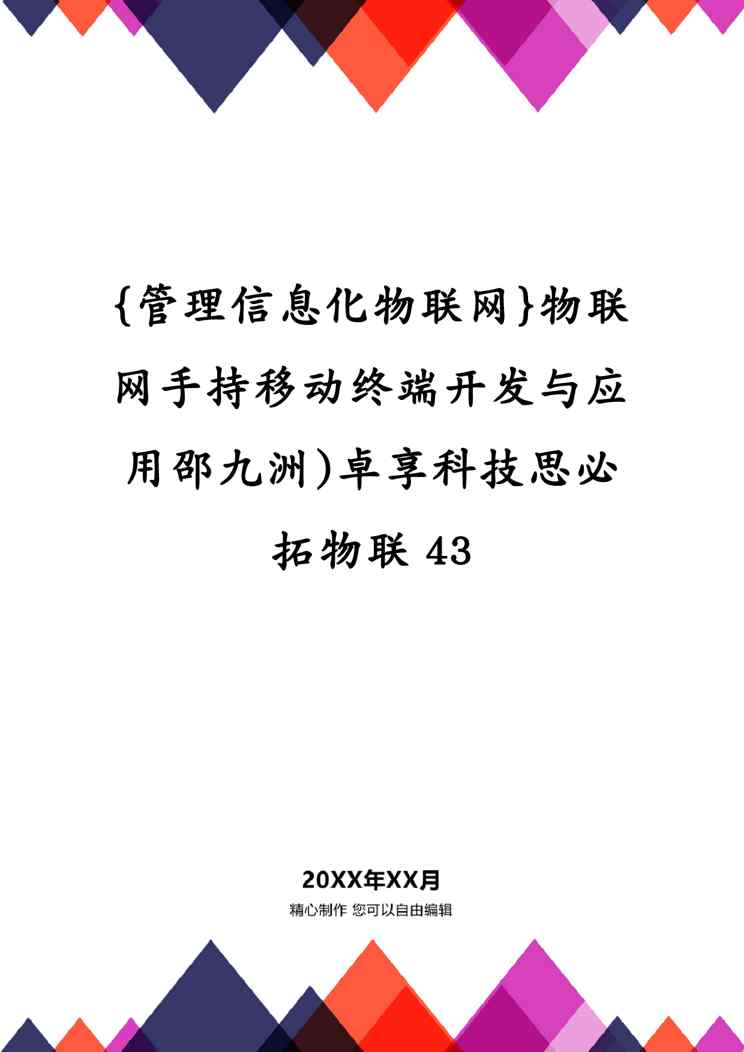 不久前,最新文档《{管理信息化物联网}物联网手持移动终端开发与应用邵九洲)卓享科技思必拓物联43》全文正式在本站发布,感兴趣的用户可以下载阅读。 声明:本站所有文章,如无特殊说明或标注,均为本站原创发布。任何个人或组织,在未征得本站同意时,禁止复制、盗用、采集、发布本站内容到任何网站、书籍等各类媒体平台。如若本站内容侵犯了原著者的合法权益,可联系我们进行处理。