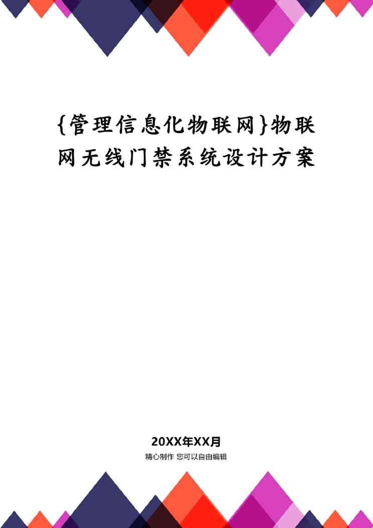 不久前,最新文档《{管理信息化物联网}物联网无线门禁系统设计方案》全文正式在本站发布,感兴趣的用户可以下载阅读。 声明:本站所有文章,如无特殊说明或标注,均为本站原创发布。任何个人或组织,在未征得本站同意时,禁止复制、盗用、采集、发布本站内容到任何网站、书籍等各类媒体平台。如若本站内容侵犯了原著者的合法权益,可联系我们进行处理。