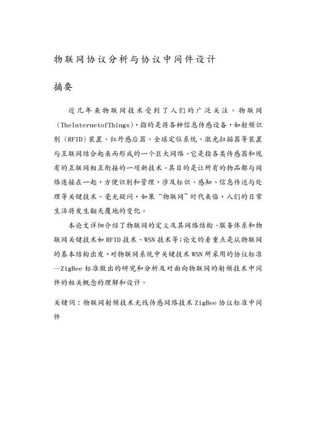 不久前,最新文档《{管理信息化物联网}物联网协议分析与协议中间件设计35》全文正式在本站发布,感兴趣的用户可以下载阅读。 声明:本站所有文章,如无特殊说明或标注,均为本站原创发布。任何个人或组织,在未征得本站同意时,禁止复制、盗用、采集、发布本站内容到任何网站、书籍等各类媒体平台。如若本站内容侵犯了原著者的合法权益,可联系我们进行处理。