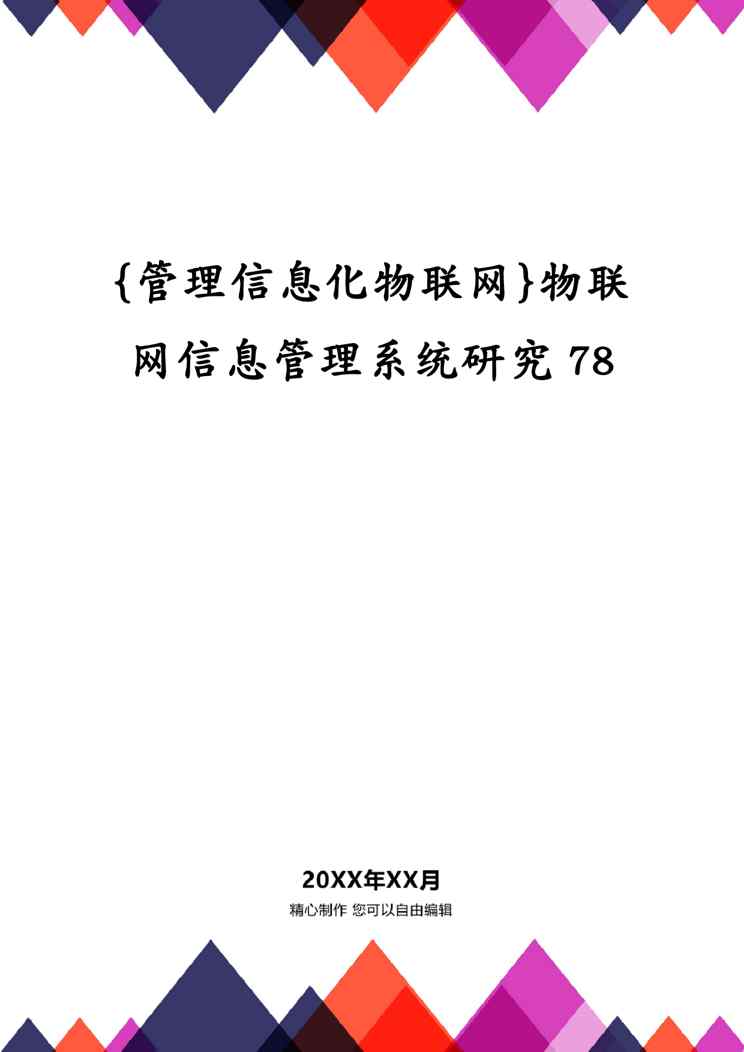 本站资深用户发布了最新的《{管理信息化物联网}物联网信息管理系统研究78》文档,以下内容为预览,详细内容可下载阅读。 声明:本站所有文章,如无特殊说明或标注,均为本站原创发布。任何个人或组织,在未征得本站同意时,禁止复制、盗用、采集、发布本站内容到任何网站、书籍等各类媒体平台。如若本站内容侵犯了原著者的合法权益,可联系我们进行处理。