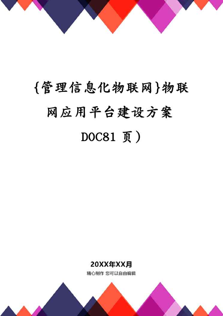 不久前,最新文档《{管理信息化物联网}物联网应用平台建设方案DOC81页)》全文正式在本站发布,感兴趣的用户可以下载阅读。 声明:本站所有文章,如无特殊说明或标注,均为本站原创发布。任何个人或组织,在未征得本站同意时,禁止复制、盗用、采集、发布本站内容到任何网站、书籍等各类媒体平台。如若本站内容侵犯了原著者的合法权益,可联系我们进行处理。