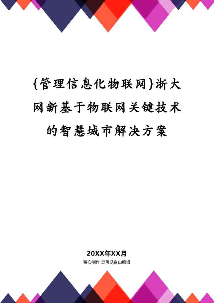 不久前,最新文档《{管理信息化物联网}浙大网新基于物联网关键技术的智慧城市解决方案》全文正式在本站发布,感兴趣的用户可以下载阅读。 声明:本站所有文章,如无特殊说明或标注,均为本站原创发布。任何个人或组织,在未征得本站同意时,禁止复制、盗用、采集、发布本站内容到任何网站、书籍等各类媒体平台。如若本站内容侵犯了原著者的合法权益,可联系我们进行处理。