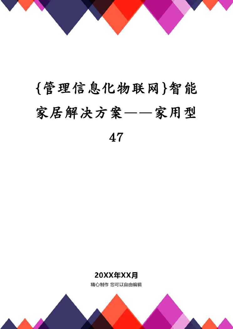本站正式发布了《{管理信息化物联网}智能家居解决方案——家用型47》文档,文档详细内容可下载阅读。 声明:本站所有文章,如无特殊说明或标注,均为本站原创发布。任何个人或组织,在未征得本站同意时,禁止复制、盗用、采集、发布本站内容到任何网站、书籍等各类媒体平台。如若本站内容侵犯了原著者的合法权益,可联系我们进行处理。