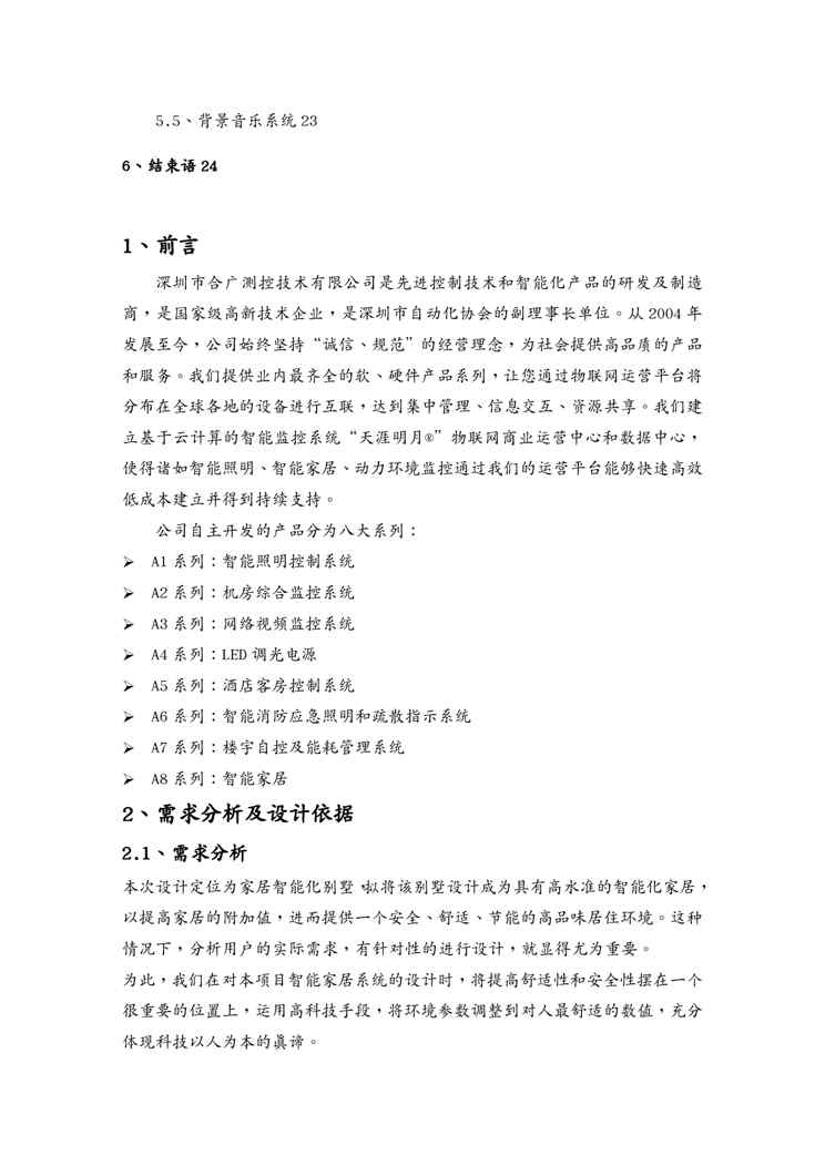 不久前,最新文档《{管理信息化物联网}智能家居控制系统方案模板24》全文正式在本站发布,感兴趣的用户可以下载阅读。 声明:本站所有文章,如无特殊说明或标注,均为本站原创发布。任何个人或组织,在未征得本站同意时,禁止复制、盗用、采集、发布本站内容到任何网站、书籍等各类媒体平台。如若本站内容侵犯了原著者的合法权益,可联系我们进行处理。