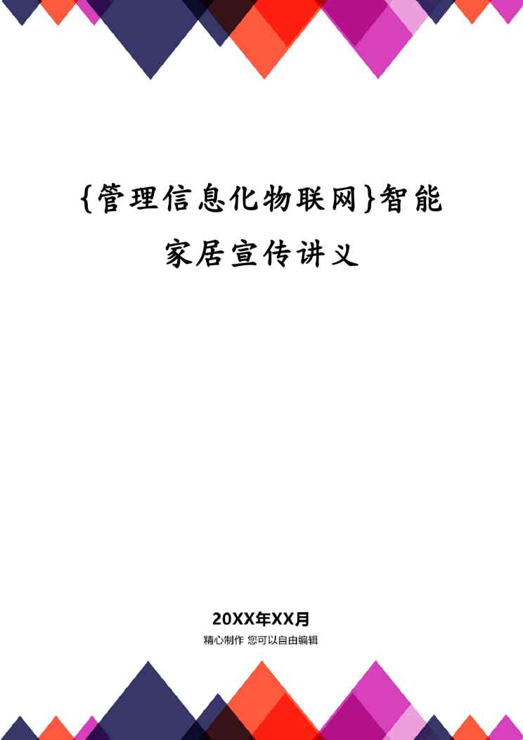 本站资深用户发布了最新的《{管理信息化物联网}智能家居宣传讲义》文档,以下内容为预览,详细内容可下载阅读。 声明:本站所有文章,如无特殊说明或标注,均为本站原创发布。任何个人或组织,在未征得本站同意时,禁止复制、盗用、采集、发布本站内容到任何网站、书籍等各类媒体平台。如若本站内容侵犯了原著者的合法权益,可联系我们进行处理。