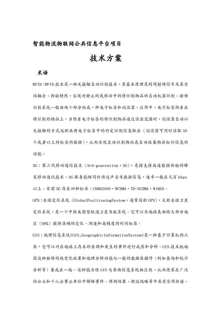 不久前,最新文档《{管理信息化信息技术}智能物流物联网公共信息平台项目技术方案》全文正式在本站发布,感兴趣的用户可以下载阅读。 声明:本站所有文章,如无特殊说明或标注,均为本站原创发布。任何个人或组织,在未征得本站同意时,禁止复制、盗用、采集、发布本站内容到任何网站、书籍等各类媒体平台。如若本站内容侵犯了原著者的合法权益,可联系我们进行处理。