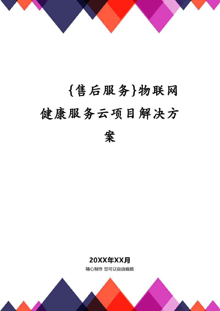 本站正式发布了《{售后服务}物联网健康服务云项目解决方案》文档,文档详细内容可下载阅读。 声明:本站所有文章,如无特殊说明或标注,均为本站原创发布。任何个人或组织,在未征得本站同意时,禁止复制、盗用、采集、发布本站内容到任何网站、书籍等各类媒体平台。如若本站内容侵犯了原著者的合法权益,可联系我们进行处理。